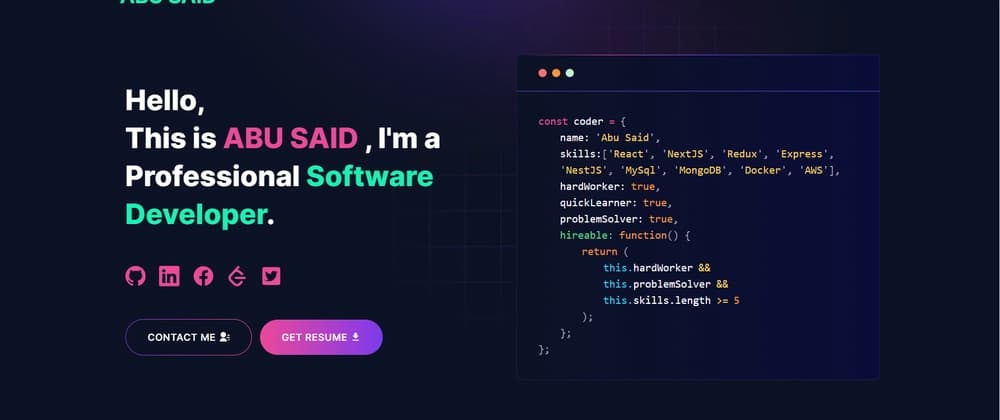 constcoder={name:'Markus Kraft',skills:['React', 'NextJS', 'Redux', 'Express', 'NestJS', 'MySql', 'MongoDB', 'Docker', 'AWS'],hardWorker:true,quickLearner:true,problemSolver:true,hireable:function() {return(this.hardWorker&&this.problemSolver&&this.skills.length>=5);};};Who I am?